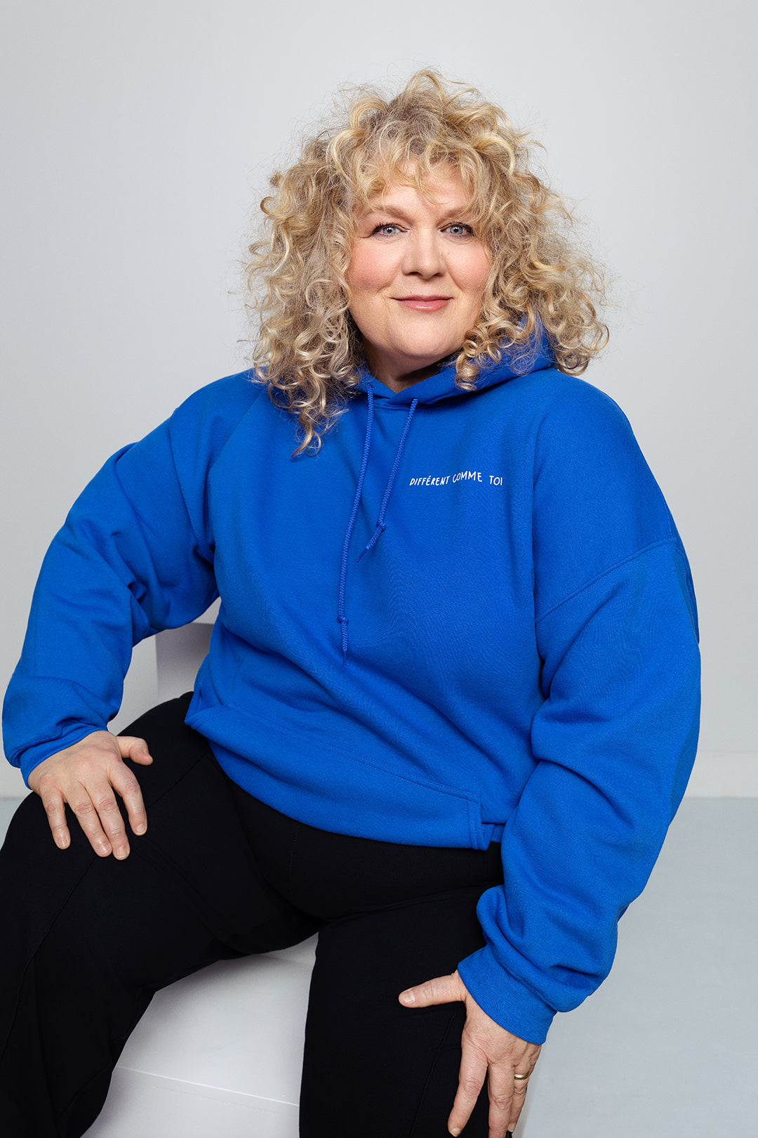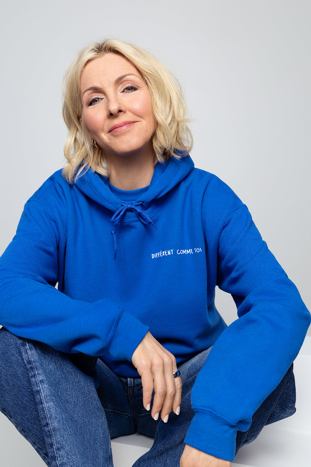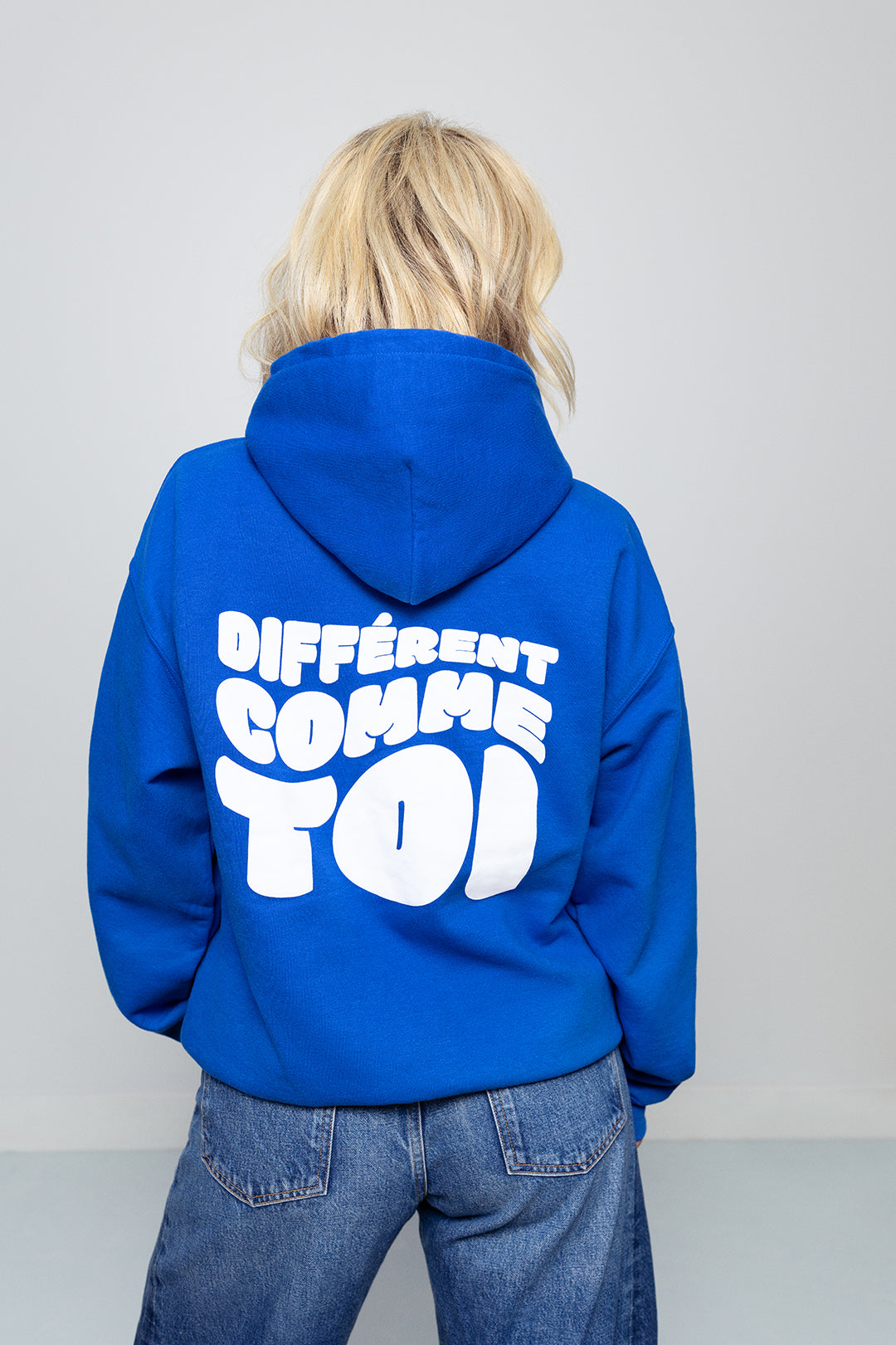 Molleton unisexe à capuchon bleu royal avec le slogan blanc Différent comme toi (pour adulte)